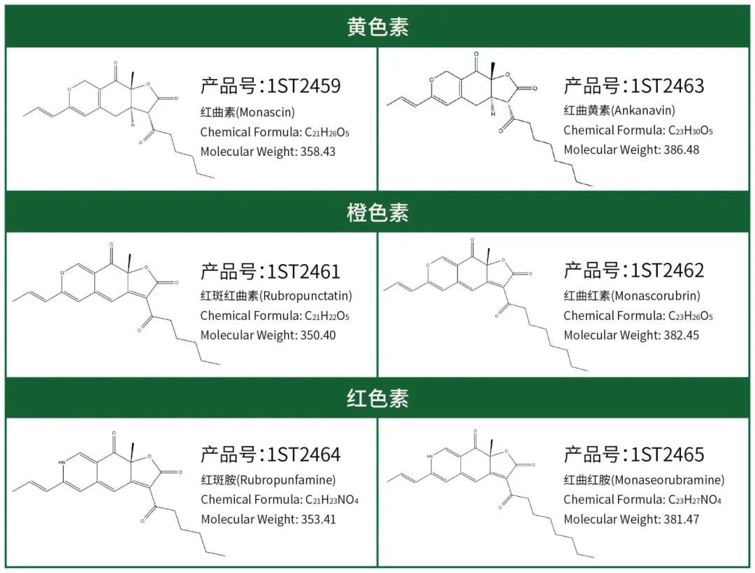 值得注意的是,紅曲色素(又稱紅曲紅)是發(fā)酵產生的多種天然色素的混合物,由于發(fā)酵工藝的不同,市售紅曲色素所含的色素成分及其含量不盡相同,也并非上述所有常見成分均可檢出。
