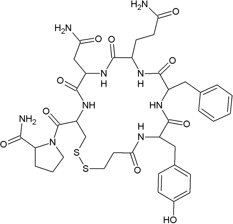 Mpa-Tyr-Phe-Gln-Asn-Cys-Pro-NH2 disulfide bond