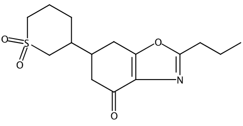 2-propyl-6-(3-thianyl)-4,5,6,7-tetrahydrobenzoxazol-4-one S-dioxide; 4(5H)-Benzoxazolone; 6,7-dihydro-2-propyl-6-(tetrahydro-2H-thiopyran-3-yl)-; S,S-dioxide; 2H-Thiopyran; 4(5H)-benzoxazolone deriv.