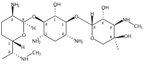 D-Streptamine, O-2-amino-2,3,4,6,7-; pentadeoxy-6-(methylamino)-α-D-ribo-heptopyranosyl-(1→4)-O-[3-deoxy-4-C-methyl-3-(methylamino)-β-L-arabinopyranosyl-(1→6)]-2-deoxy-; Gentamicin C1 (8CI); O-2-Amino-2,3,4,6,7-pentadeoxy-6-(methylamino)-α-D-ribo-heptopyranosyl-(1→4)-O-[3-deoxy-4-C-methyl-3-(methylamino)-β-L-arabinopyranosyl-(1→6)]-2-deoxy-D-streptamine