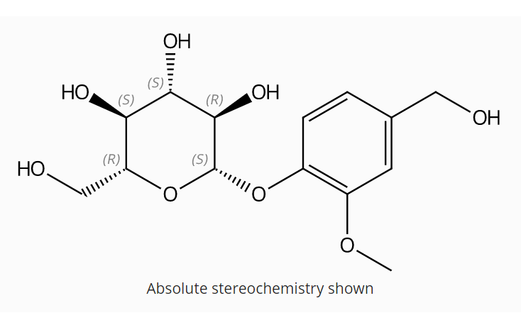 Vanillyl alcohol 4-O-β-D-glucopyranoside; 4-(Hydroxymethyl)-2-methoxyphenyl β-D-glucopyranoside; β-D-Glucopyranoside, 4-(hydroxymethyl)-2-methoxyphenyl